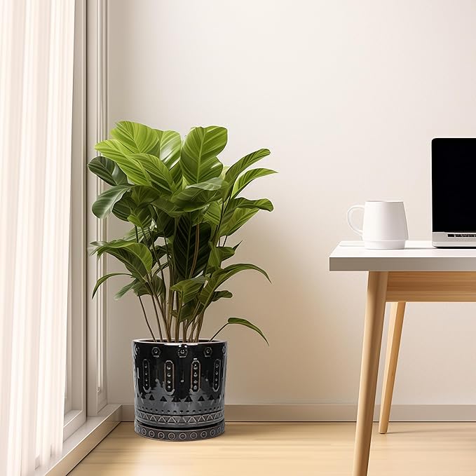 - Plant Pots with Drainage Holes: The ceramic pot for plants with drainage holes and saucers ensures good water flow and air circulation, keeping your plants growth while avoiding excess water from spilling. Equipping a mesh pad can avoid soil from flowing out of the 10 inch plant pot and contaminating your surface