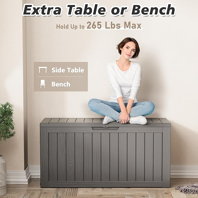 - Deck Boxes Outdoor Waterproof: Designed as a waterproof storage solution, this deck box protects your belongings from moisture and ensures they stay dry even during heavy rain. The lockable lid adds an extra layer of security, keeping your valuables safe from theft or damage.