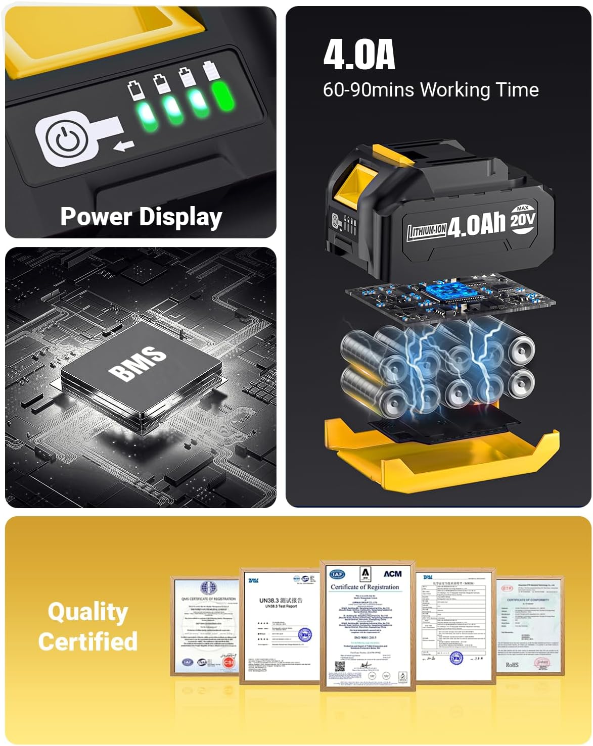 - 【20V 4.0A Battery】Running Time 60-75mins