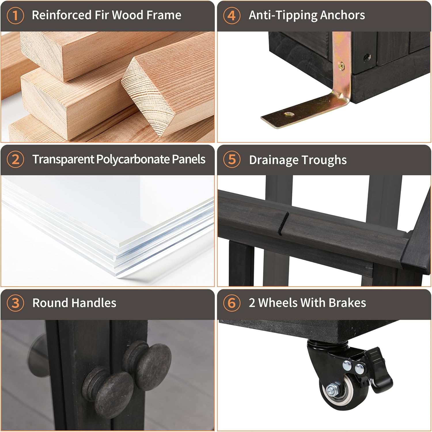 - PACE-SAVING VERTICAL GROWTH 31.5"x22.4" footprint (62"H) fits 18+ plants vertically without crowding balconies. FSC-certified fir wood + 4mm twin-wall polycarbonate panels block 99% UV rays (UPF 50+), tested for -15°C~50°C extremes.