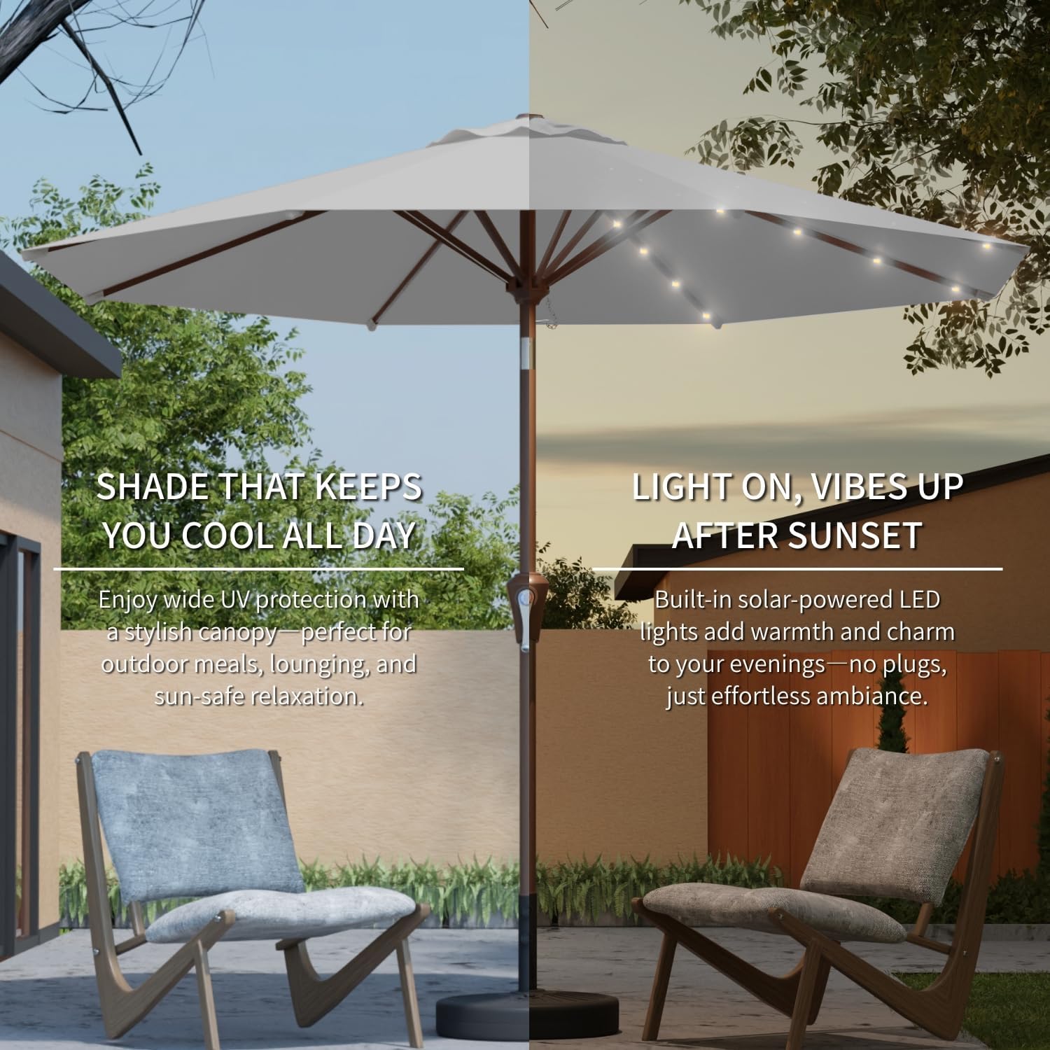 9FT Solar Umbrella 32 LED Lighted Patio Umbrella Table Market Umbrella w/Tilt and Crank, UV-Resistant Outdoor Umbrella for Pool, Garden, Deck, Light Gray