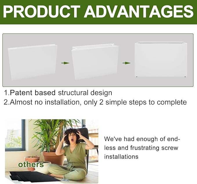 - 【UNIQUE PATENTED STRUCTURAL DESIGN】No need to go through painful assembly process, can be unfolded and simply fixed for use, assembly process does not exceed 2 minutes. Size:24 inches in height, 12 inches in width, and 36 inches in length.
