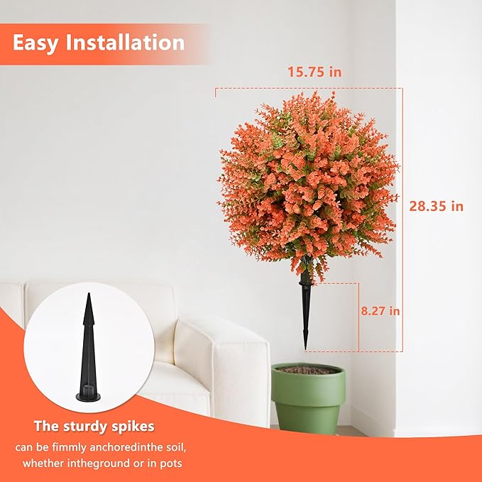 - 🟡 【Stylish with Metal Spike】 – The 28-inch tall artificial topiary comes with a metal spike . adding a cozy autumnal touch to your home, office, or garden decor.