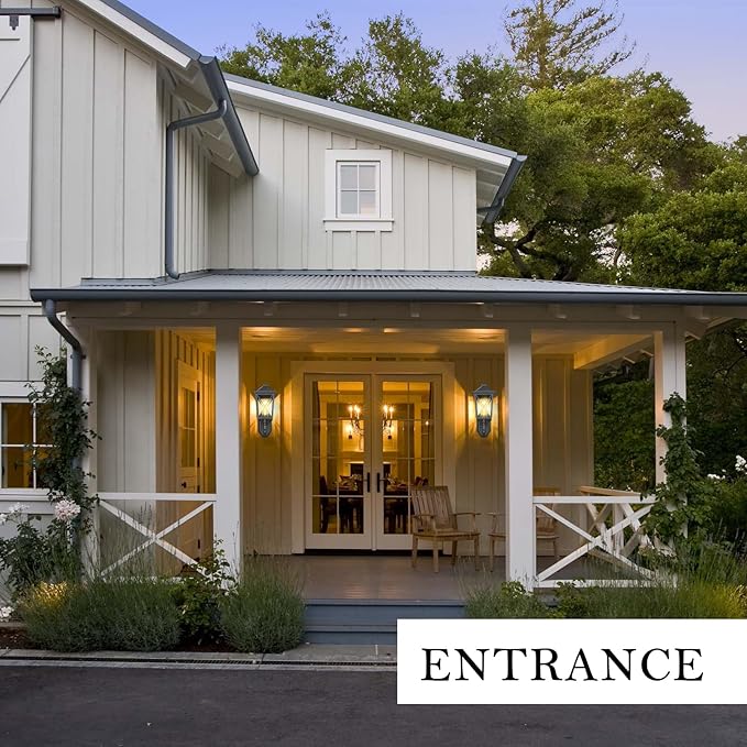 - Rust Resistant Wall Mounted Porch Light : Wall sconce with seeded glass and black finish, making charming Iighting effects ,ideal for various outdoor spaces, these patio wall lights beautifully retro styles. Perfect for frontdoor,porch, doorway, garage, backyard, hallway, patio, foyer, and entryway.