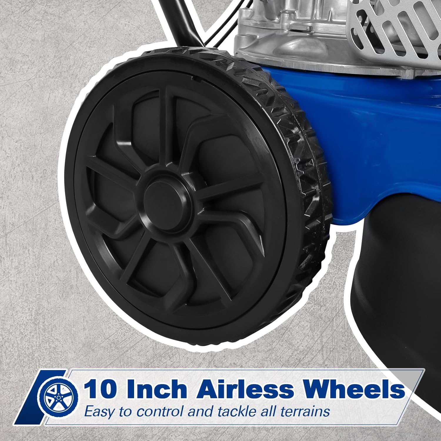 - SELF-PROPELLED FOR EFFORTLESS MOWING: Features a self-propelled drive system with a steady speed of 3.06 km/h (approx. 1.9 mph), allowing you to maneuver across various terrains effortlesslyโno pushing required, just guide and go.