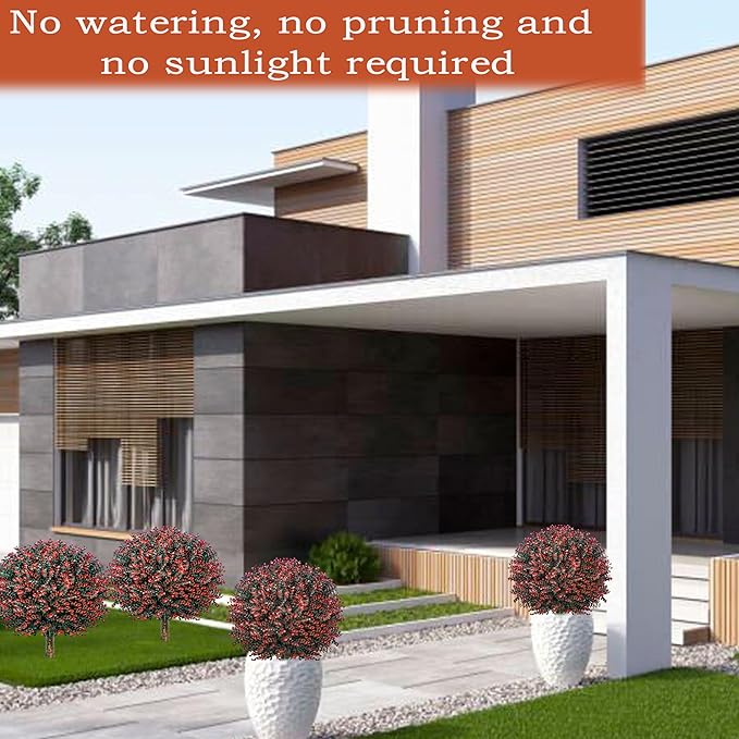 - 🌿Updated Material of Artificial Boxwood Ball Tree: Red+Green color more likes natural plants. UV resistant, fade-proof PE material,Size:17*24"(include 7"stake).Diameter:17".
