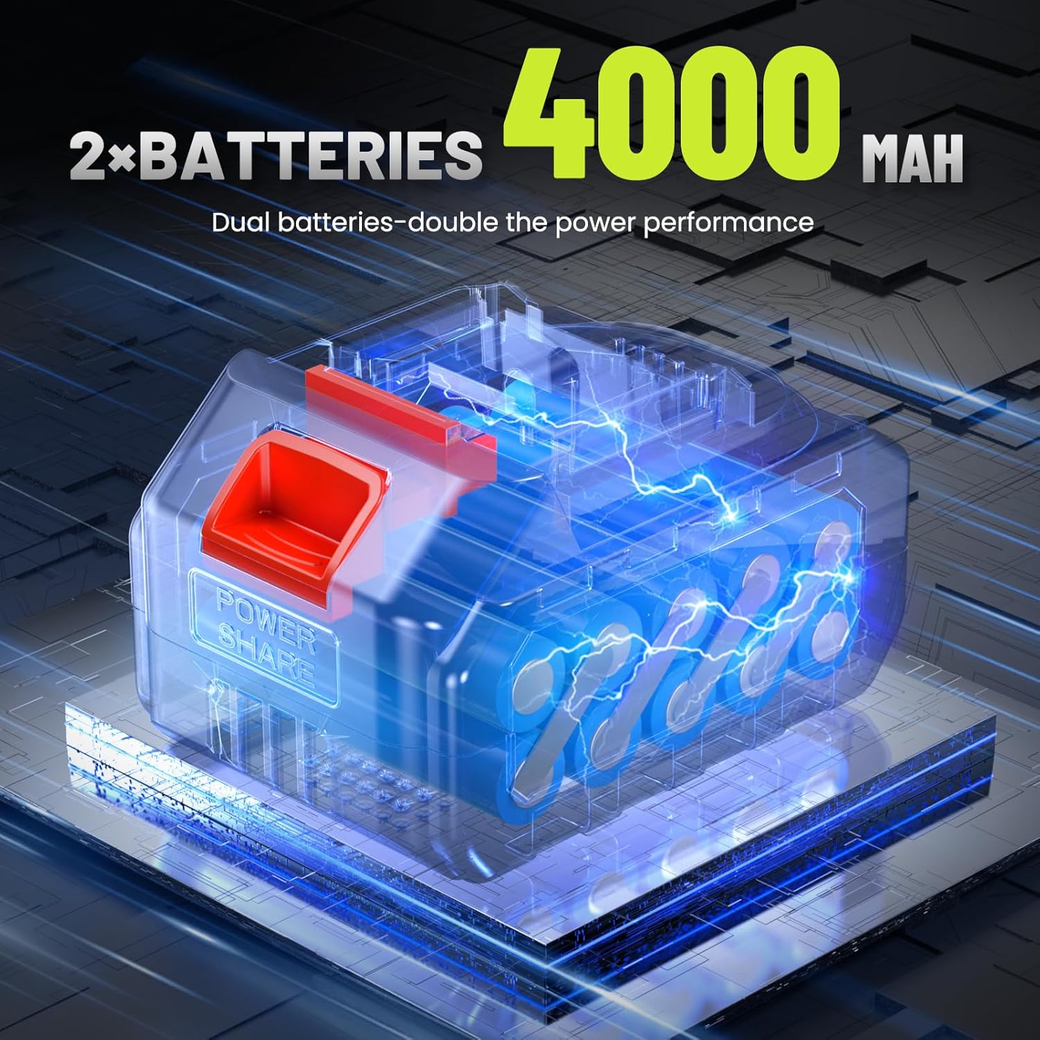 - Leaf blower cordless with battery and charger comes with 2 21V-4000mAh batteries and a quick charger, leaf blowers 13+ minutes of continuous operation (26+ minutes per battery). The electric leaf blower cordless more efficient care of your yard, the charger is designed as a rapid charger that quickly recharges the batteries. Battery blower brings more convenience to your cleaning and gives you a clean and tidy garden.