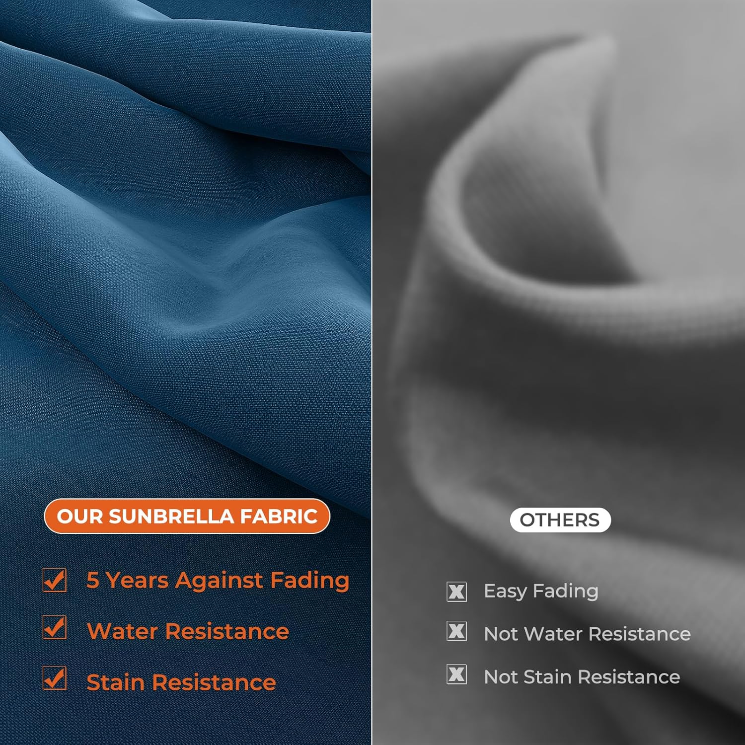 - Sunbrella Fabric Canopy: Made from 100% solution-dyed acrylic, the 270g Sunbrella fabric is breathable, water- and stain-resistant, and offers 5-year fade protection—perfect for long-lasting outdoor use.