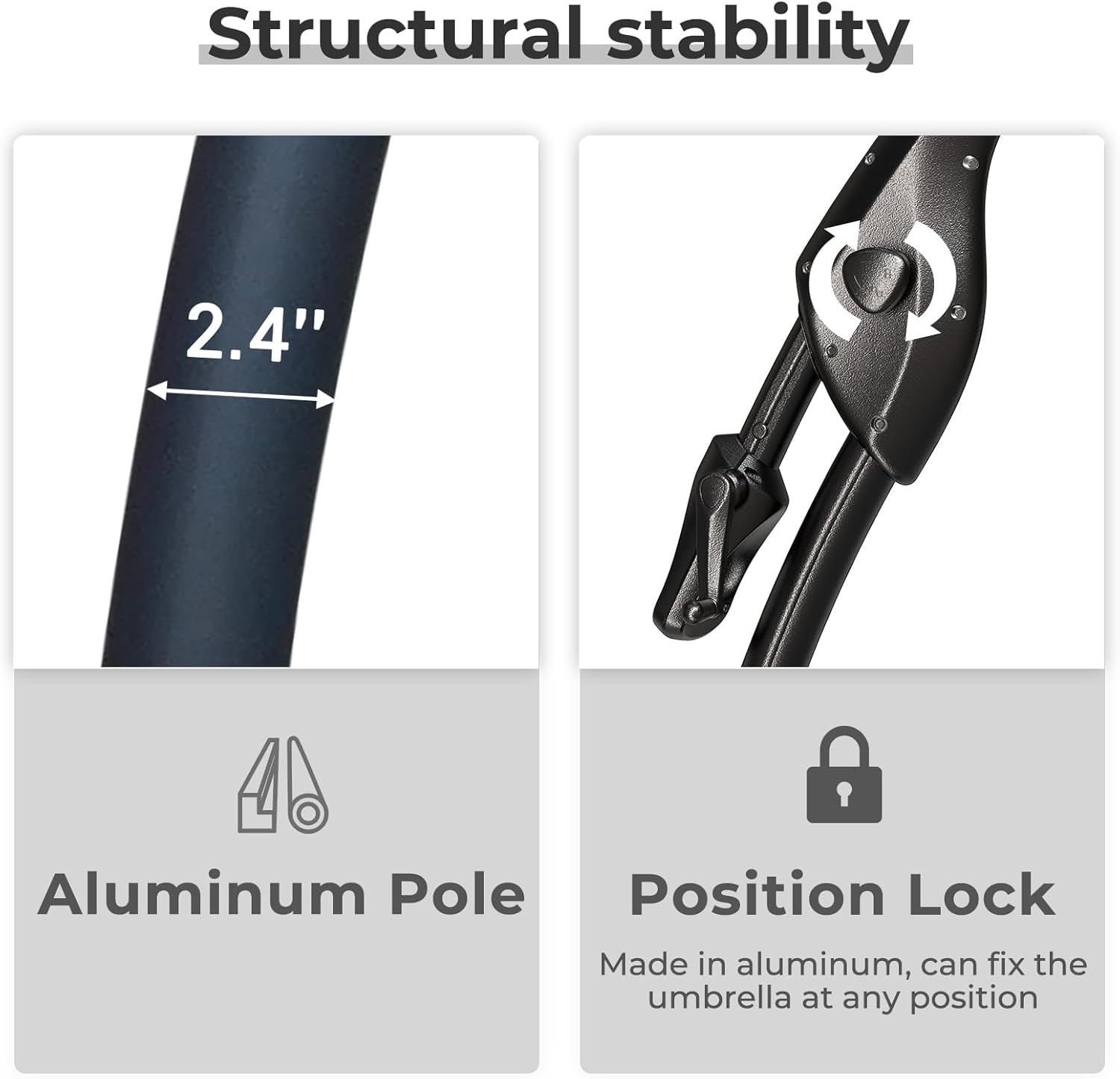 - Wide Cantilever Coverage: Provides up to 100 sq. ft. of cooling shade. The adjustable auto-lock tilt lets you easily follow the sun’s movement, keeping your space shaded all day long.