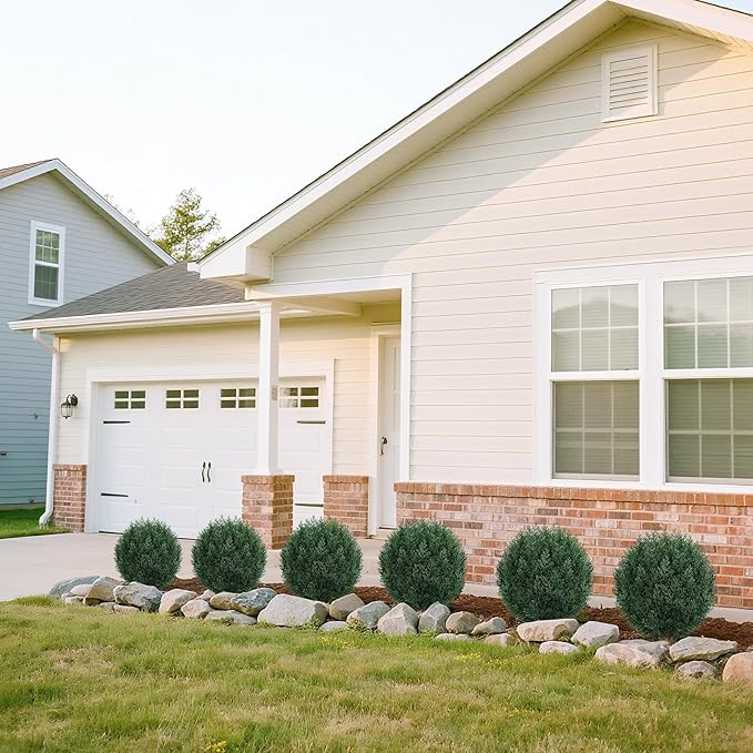 - [Versatile Usages] Whether staked into garden soil or styled in a decorative planter, the artificial shrubs for outdoors blend seamlessly into any setting. From modern patios and cozy front porches to bright living rooms and festive holiday corners, the faux pine plants are a low-maintenance way to keep your space feeling fresh, welcoming, and seasonally on point—all year long. They also make a thoughtful gift for anyone who loves greenery without the hassle.