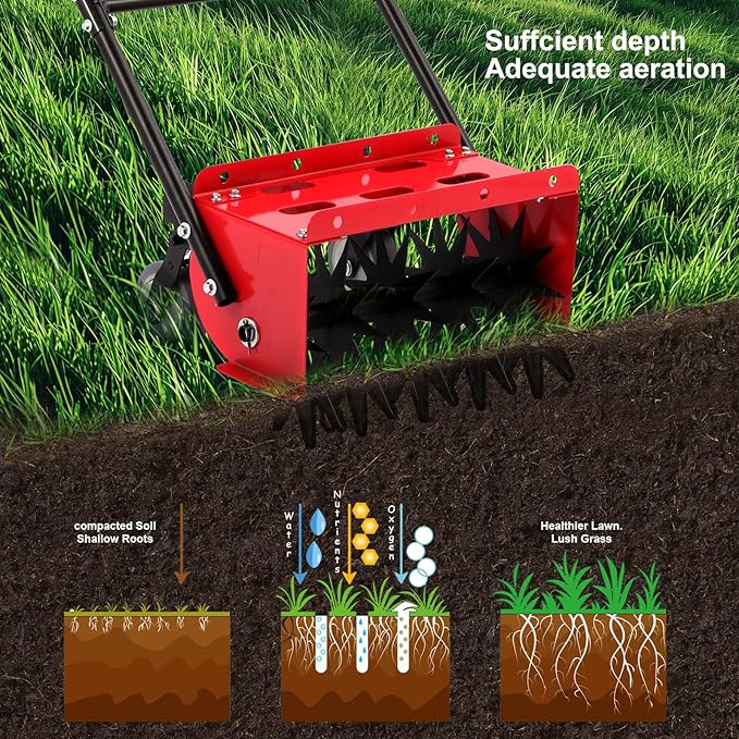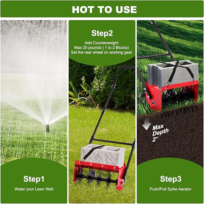 - Use Tips :If your lawn soil is hard and dry, please water the lawn first, then wait 12-24 hours before using Lineware Aerator, moist soil can make our lawn aerator work best