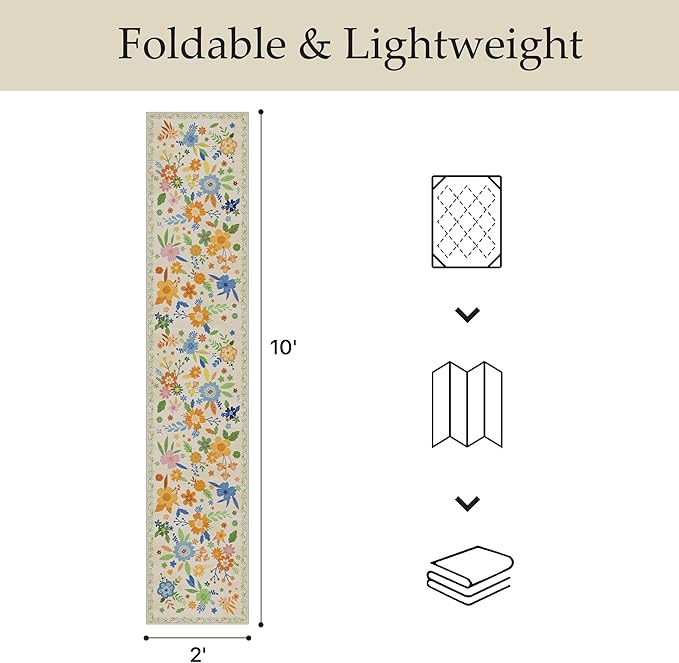 GENIMO Indoor Outdoor Area Rug 2' X 10' Waterproof, Washable Door Mat Non Shedding, Easy Cleaning Floral Outdoor Carpet for Patio, Entryway, Porch, Bathroom, Living Room, Bedroom, Backyard