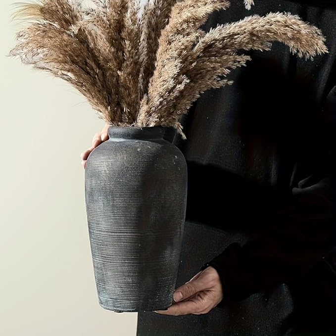 - LARGE DECORATIVE VASE**: 28cm (11") tall x 16cm (6") wide – perfect as a **statement centerpiece** for tables, mantels, or entryways. Holds tall dried pampas grass, eucalyptus, or sunflowers effortlessly.