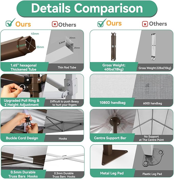 - [Portable Hand Bag, Versatile Applications]We provide a solid and tear-resistant 1080D Oxford fabric carry bag capable of carrying the 10x10 heavy duty Canopy, weighing up to 55 pounds. The canopy is perfect for parties, barbecues, trade shows, sports events, disaster relief, or any outdoor activities.