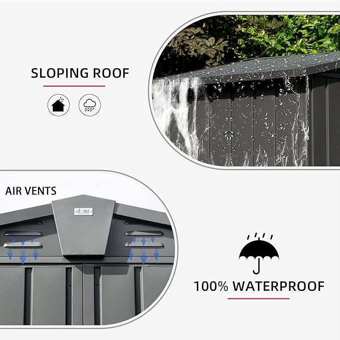 - 🛠️ High-quality Material - The outdoor metal shed uses thicker galvanized steel and a durable framework to ensure safe and all-weather use. Overlapped wall panels offer waterproof and moisture-resistant properties, perfect for all weather conditions.