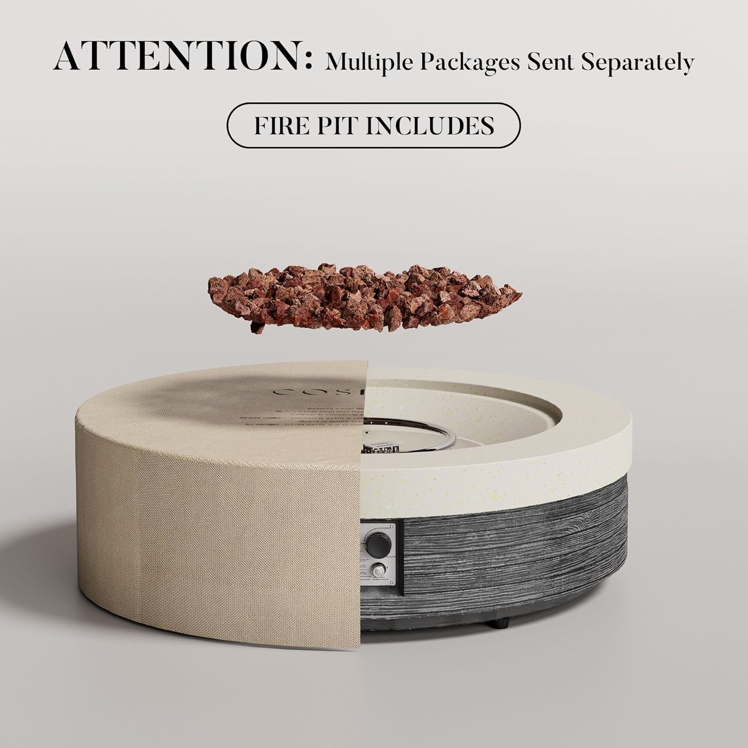 - Design Masterpiece: Upgrade your outdoor space with our 2025-designed fire pit table. It combines weather-resistant concrete and wood grain veneer. The baking varnish layer prevents the fire pits from corrosion and rusting. It will be the highlight of your backyard.