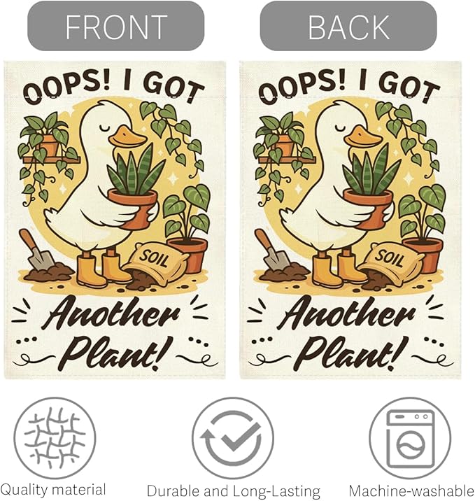 Funny Silly Goose Garden Flag Oops I Got Another Plant Lover Gift Outdoor Decorations Small Double Sided Burlap art Stained Glass Style Garden Flags 12 x 18 Inch for Outside