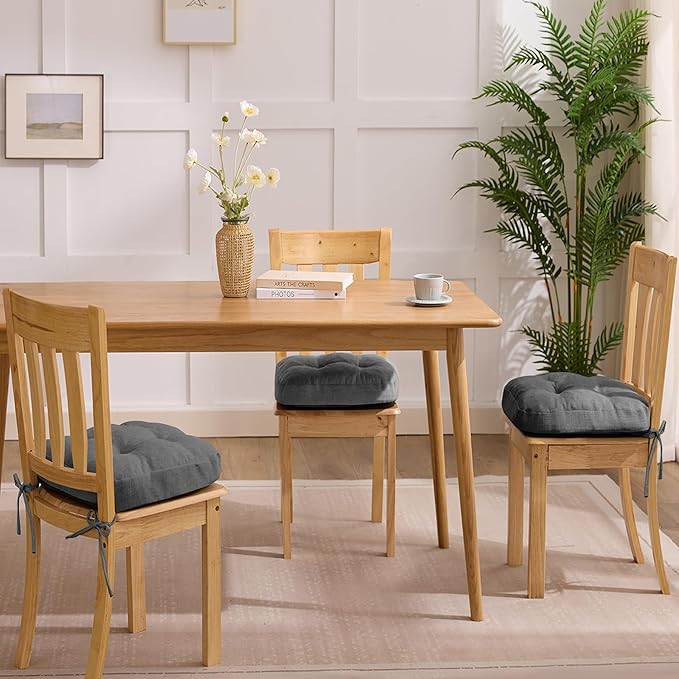 Chair Cushions for Dining Chairs, Dining Chair Cushions, Tufted Indoor Chair Pads with Ties & Non Slip Backing, Seat Cushions for Kitchen Chairs 16.5” x 16.5” x 3.5”, Set of 6, Grey