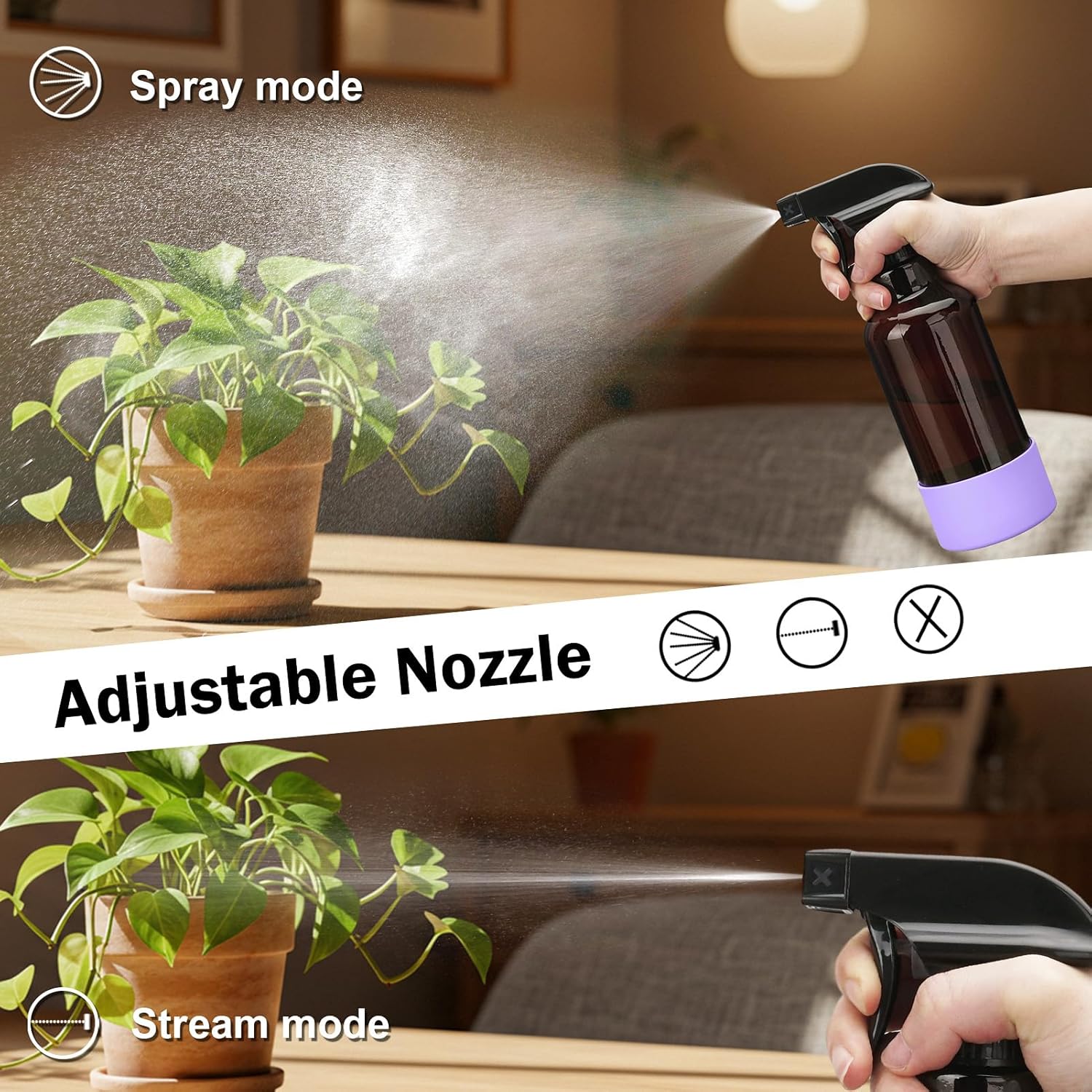 - MULTIPURPOSE USE: From misting plants and styling hair to DIY cleaning sprays (water/vinegar mix) spraying indoor plants, hair spraying, essential oils spray, car detailing, dog training. This all-purpose water spray bottle for hair and home tasks is your go-to tool.