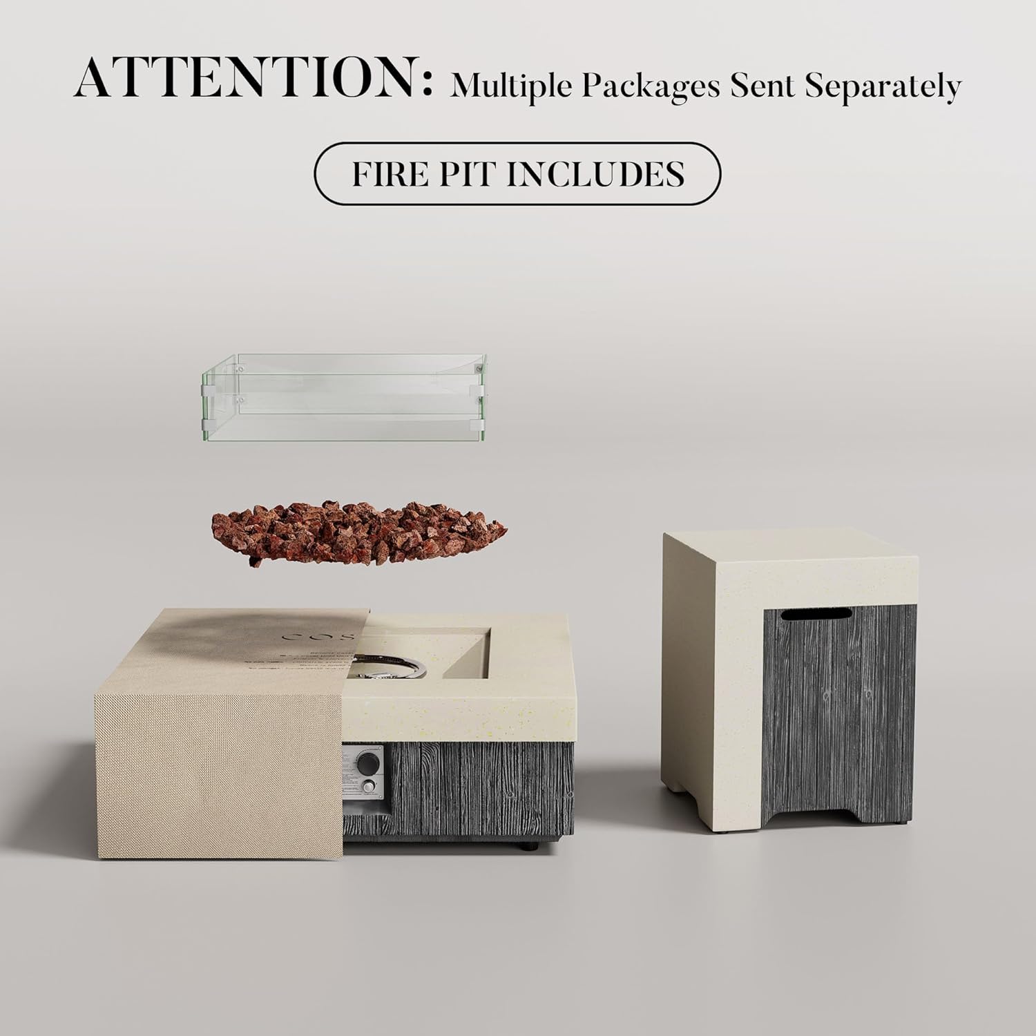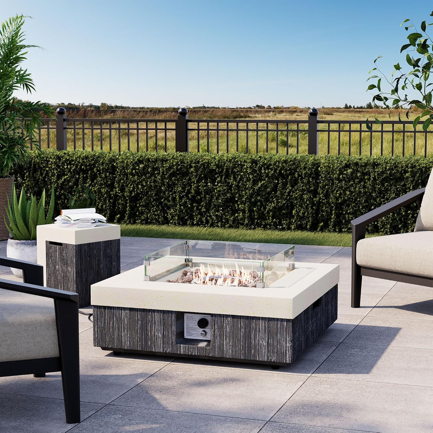 COSIEST 35" Outdoor Propane Fire Pit Table w Tank Cover & Wind Guard, Square Gas Fire Pit Table with Concrete & Wood Grain Design, 50000BTU CSA Certified Fire Tables for Patio, Backyard, Garden