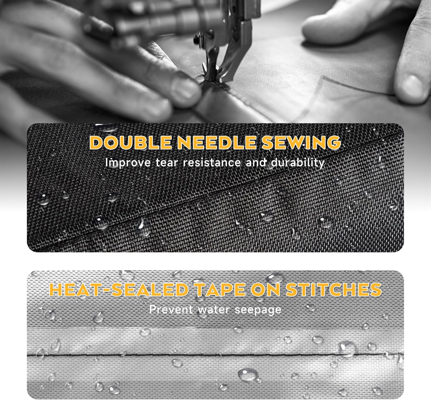 - WATERPROOF & ANTI-UV – Waterproof outer coating and heat-sealed tape on stitches prevent water seepage, making the cover completely waterproof to protect your grill. Inner PU coating layer protects your outdoor portable bbq from damage caused by prolonged sun exposure