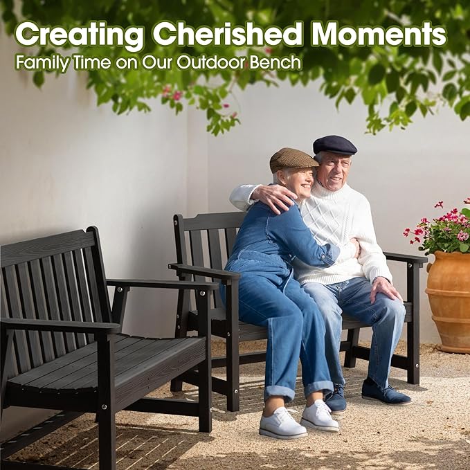 - 【All-Weather HDPE】: Ciokea outdoor bench is constructed from high-density polyethylene (HDPE), ensuring it withstands rain, UV rays, and temperature changes without cracking or rusting