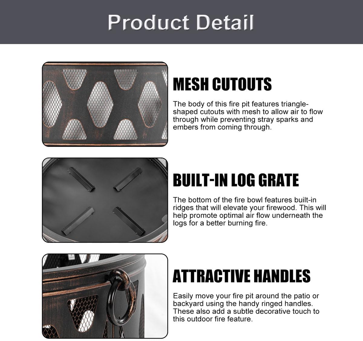 - Includes Spark Screen And Fire Poker For Added Safety And Easy Flame Control