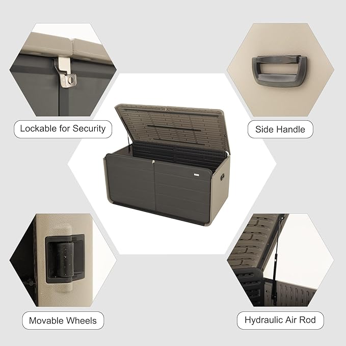 - Hydraulic Air Rod Design - Featuring two hydraulic air rods, domi patio storage box allows for effortless opening and slow, controlled closing, minimizing the risk of pinched fingers and ensuring safe and smooth operation.