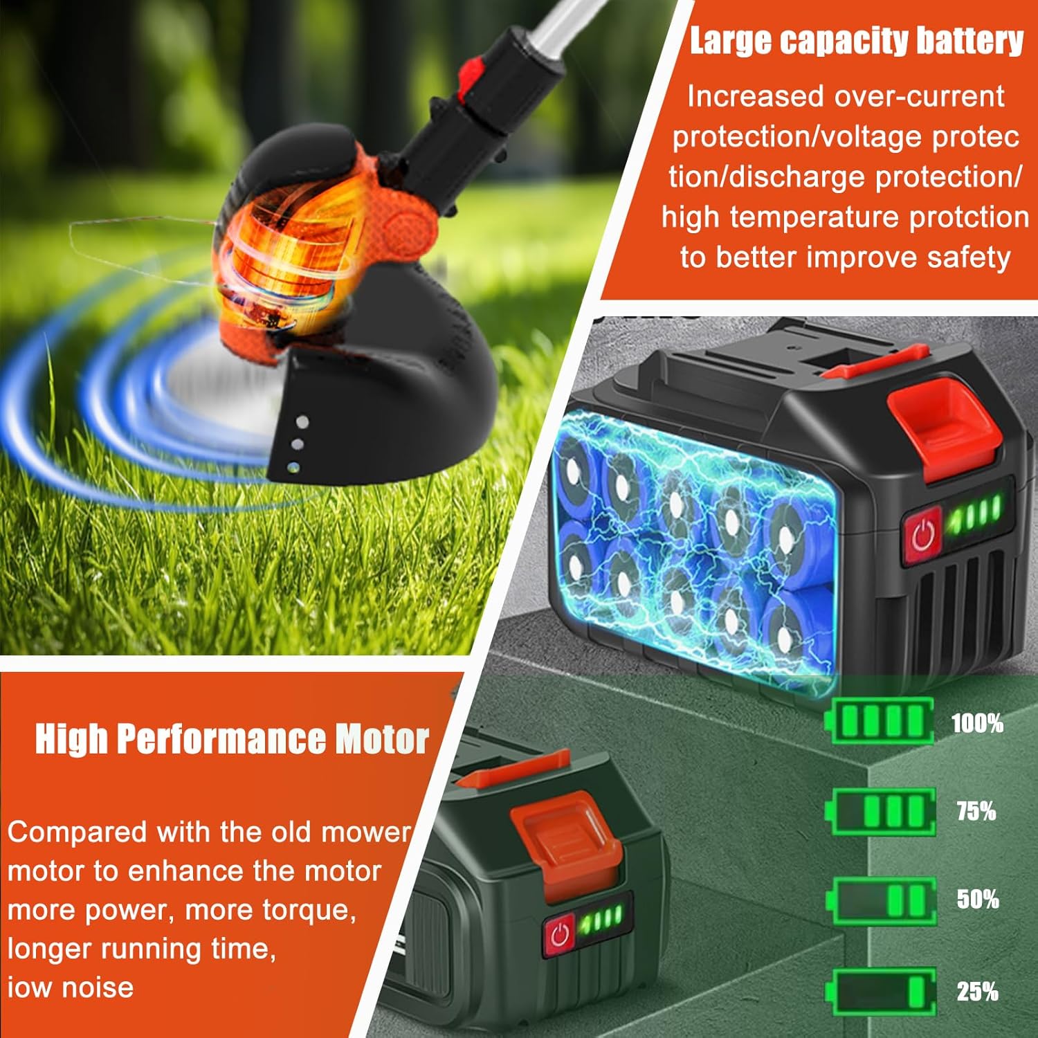 - 【Worry-After-Sales Service】 100% customer satisfaction is our top priority, after-sales team and technicians are online 24 hours a day to provide you with online service, any questions about the use, missing parts, product defects, battery charging, installation; please contact us directly, and we will solve your problem 100%. The best perfect weed wacker for dads, moms, friends, husbands, wives and hard workers and more