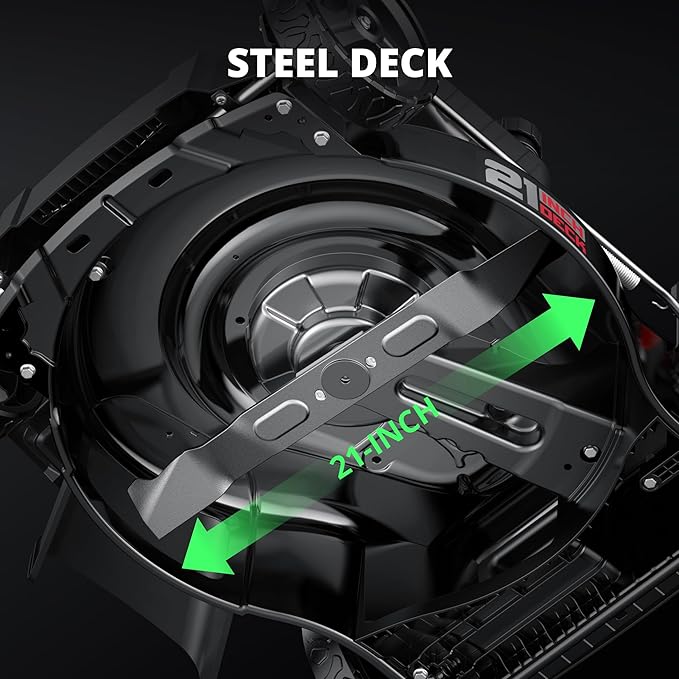 - DURABLE 21" STEEL DECK FOR FASTER RESULTS: The reinforced 21-inch steel cutting deck on this lawnmower is built to handle tough mowing jobs, delivering smooth, even cuts. It’s an excellent match for those who want to finish faster with a high-efficiency gas powered lawn mower