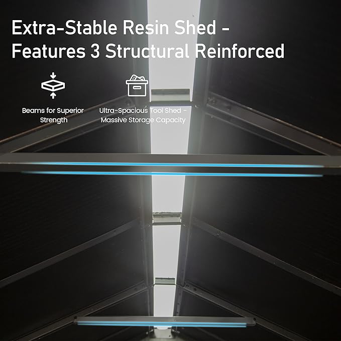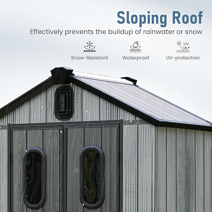 - Durable Double-Wall Resin Construction: Built with reinforced resin panels and interlocking wall connectors for enhanced durability, this shed resists warping, denting, and weather damage—ideal for year-round use.