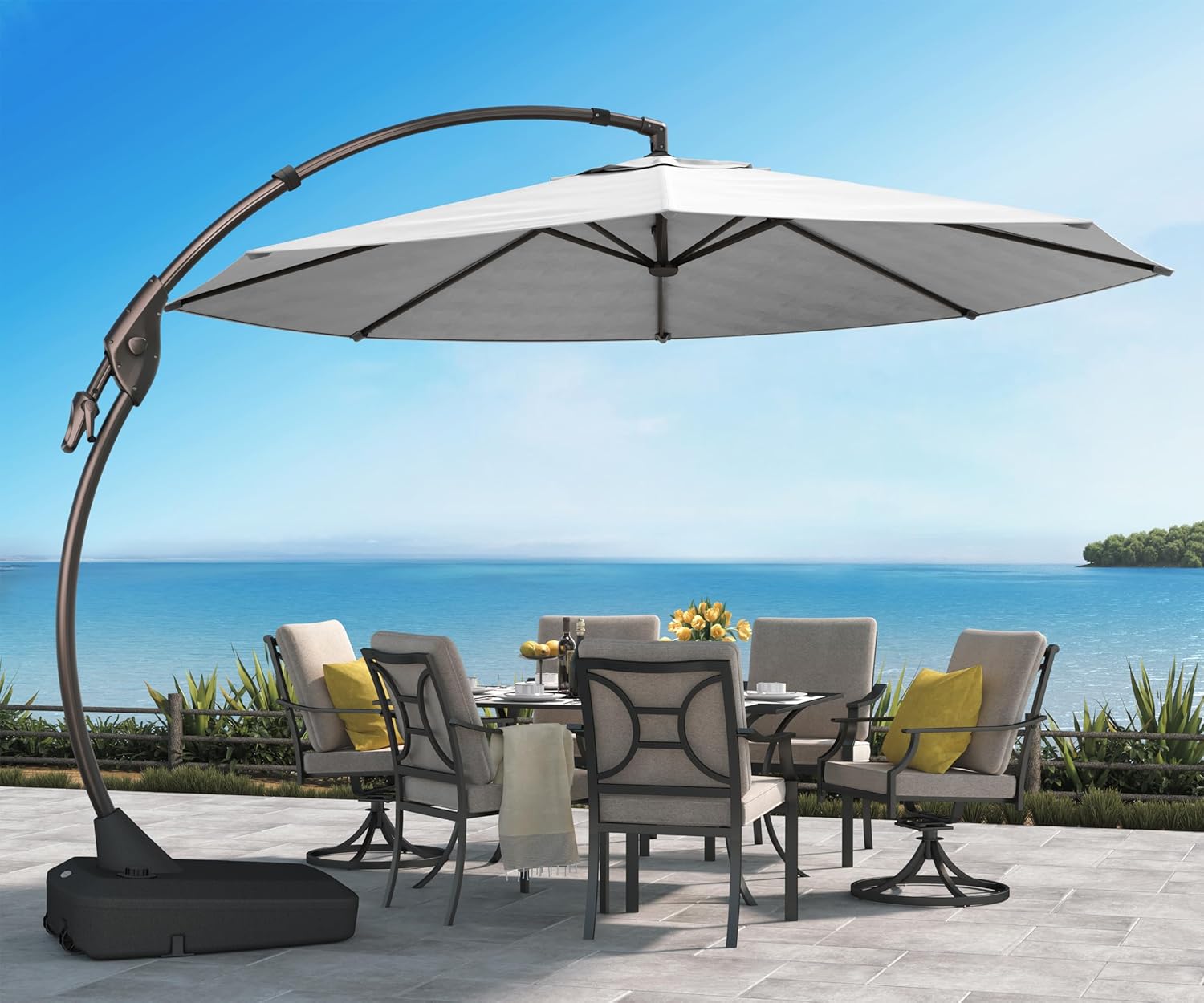 Grand patio 12 FT Sunbrella Cantilever Umbrella with Base Outdoor Aluminum Offset Umbrella with Tilt Adjustment (Granite, 12 FT-SUNBRELLA)